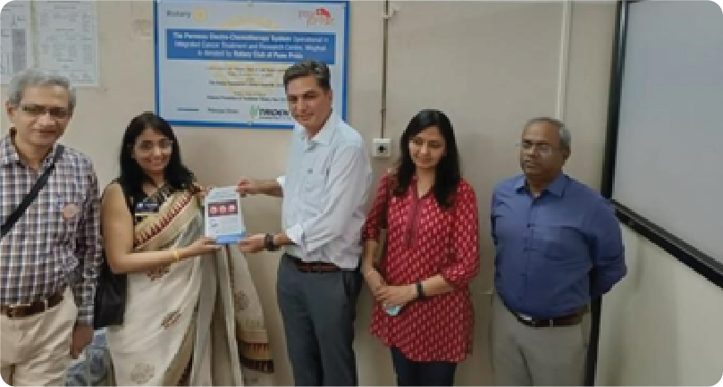 The Rotary Club of Pune Pride, India, in collaboration with Rotary International and Rotary Club of Lake Nona Lunch, USA donated PERMEOS electro-chemotherapy equipment to four cancer centres in Western India in March-April 2022. The grant was facilitated by the principal donation from Trident International Pvt. Ltd., Pune, India.